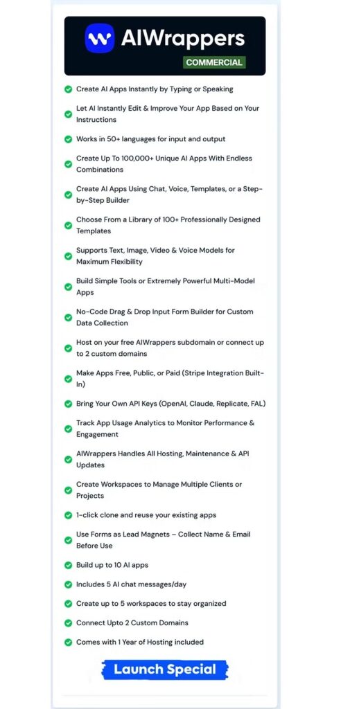If you’re serious about launching your own AI tools or generating income by helping clients, AIWrappers is a smart, future-ready solution worth every dollar.