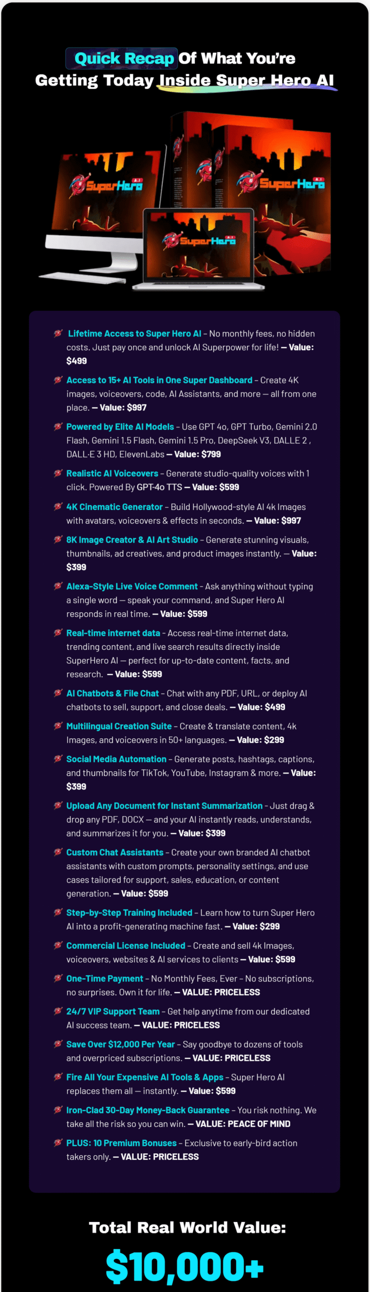 Now with SuperHero AI, he’s raising the bar again by offering a powerful, all-in-one AI multimedia platform that’s simple enough for beginners, but advanced enough to impress the pros.
